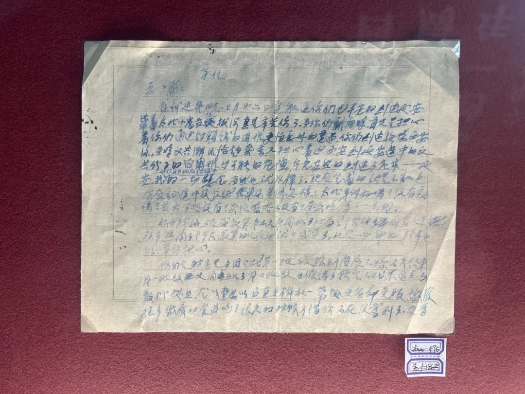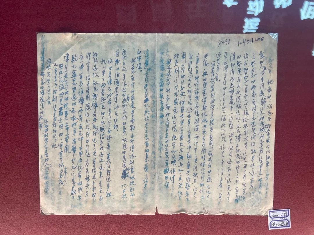 展出的左權(quán)將軍部分家書。(新華網(wǎng) 于楊 攝)
