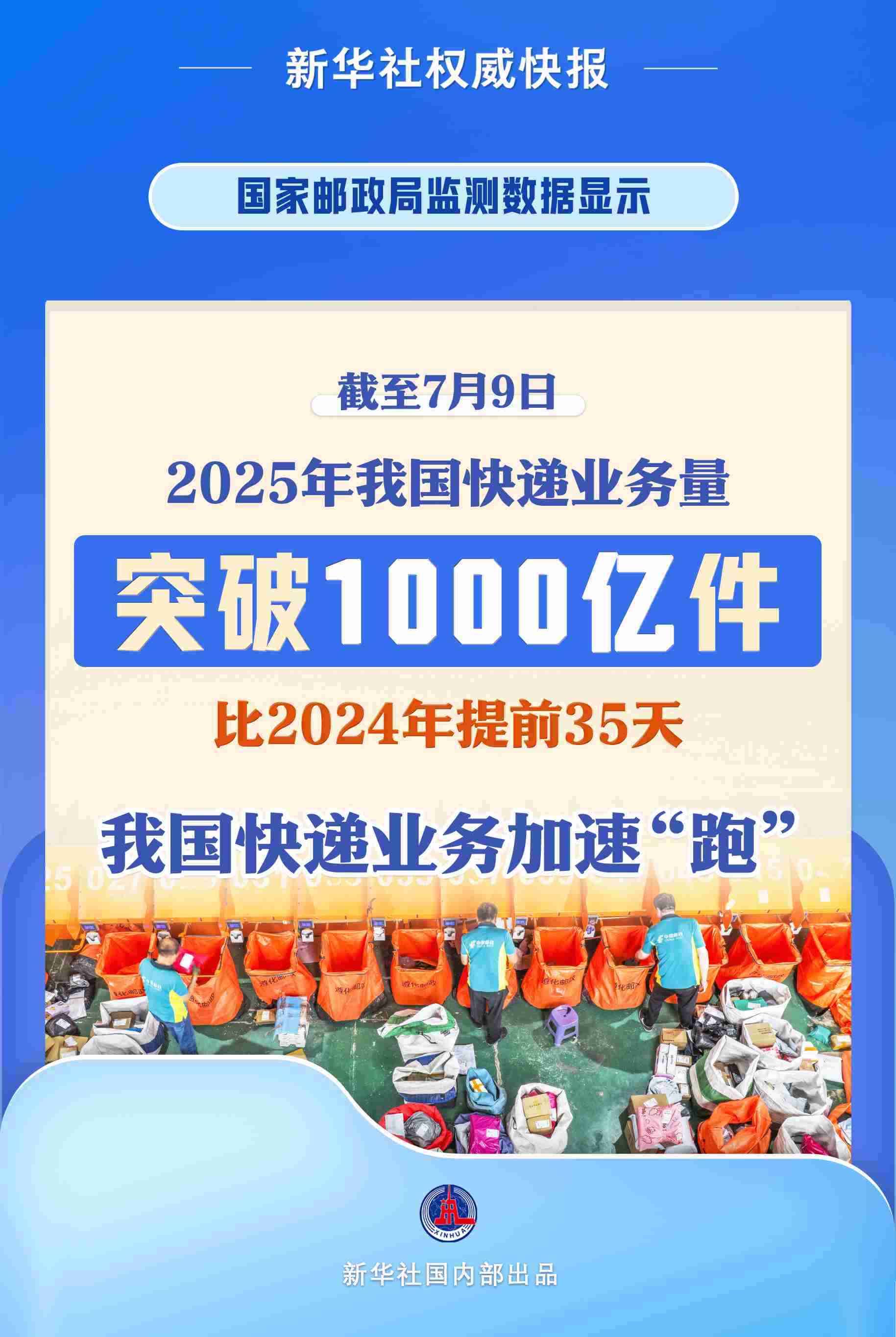 新華社北京7月10日電(記者葉昊鳴)記者10日從國(guó)家郵政局了解到,根據(jù)國(guó)家郵政局監(jiān)測(cè)數(shù)據(jù)顯示,截至7月9日,2025年我國(guó)快遞業(yè)務(wù)量突破1000億件,比2024年達(dá)到千億件提前35天。