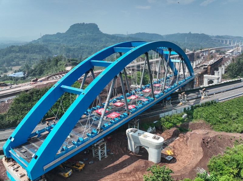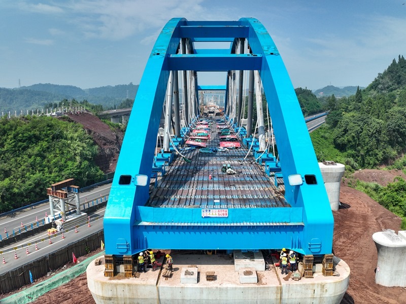 當(dāng)日,由中鐵四局承建的西渝高鐵跨營達高速公路大橋主體平穩(wěn)落在橋墩上,標(biāo)志著全國首座高鐵大跨度網(wǎng)狀吊桿系桿拱橋頂推施工完成,為全線按期通車奠定了堅實基礎(chǔ)。