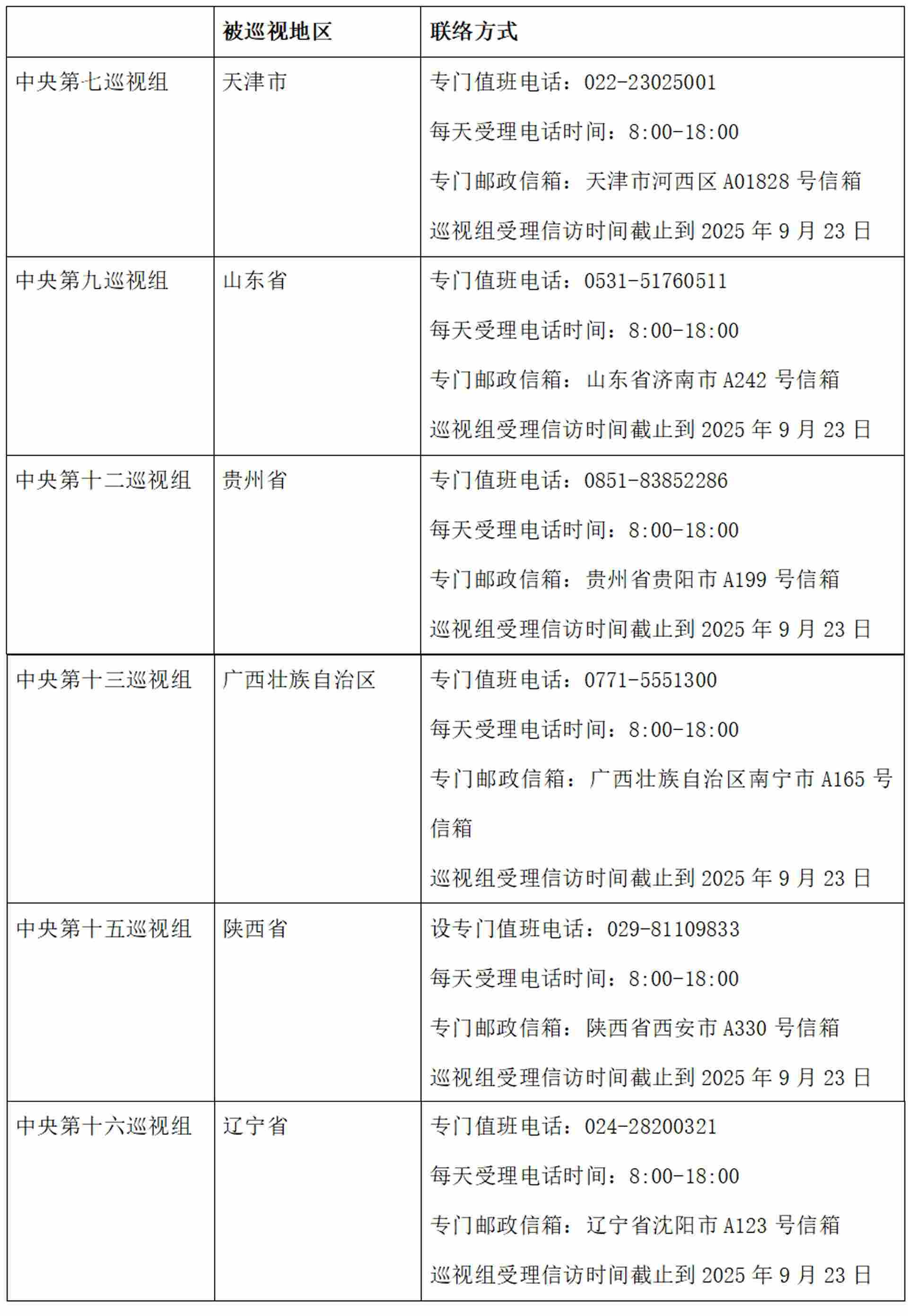 根據(jù)黨中央關(guān)于巡視工作的統(tǒng)一部署,近日,二十屆中央第六輪巡視的16個巡視組陸續(xù)開始進(jìn)駐被巡視地區(qū),并公布了聯(lián)系方式。
