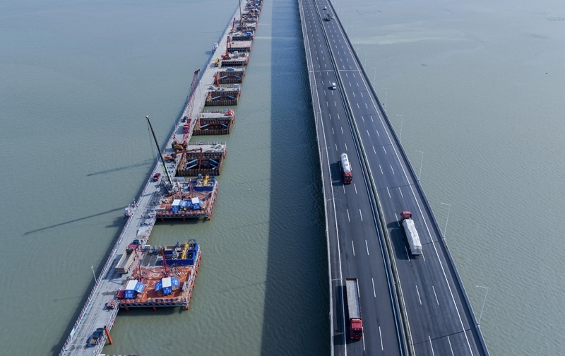 7月18日,新建漳汕高鐵全線控制性工程漳江灣跨海特大橋主棧橋完工,為后續(xù)海上各工作面施工奠定基礎(chǔ)。漳汕高鐵漳江灣跨海特大橋橋梁全長(zhǎng)5.8公里,海域部分橋梁長(zhǎng)5公里。目前,大橋主體結(jié)構(gòu)施工正在有序推進(jìn)。
