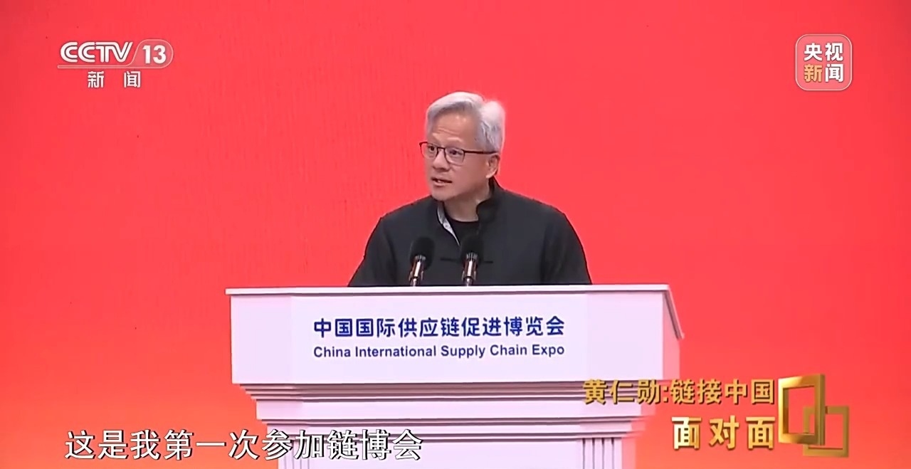 鏈博會(huì)開幕式上,黃仁勛沒有穿他那件標(biāo)志性的皮衣,而是身著唐裝,并用中文開場(chǎng)演講。