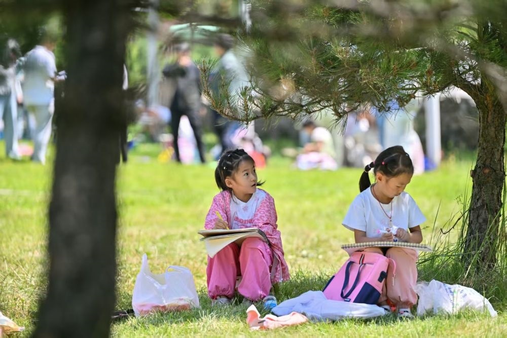 7月22日,兩名小學(xué)生在青海省大通縣邊麻溝花海景區(qū)內(nèi)參加暑期美術(shù)寫生研學(xué)活動(dòng)。新華社記者 孫瑞博 攝