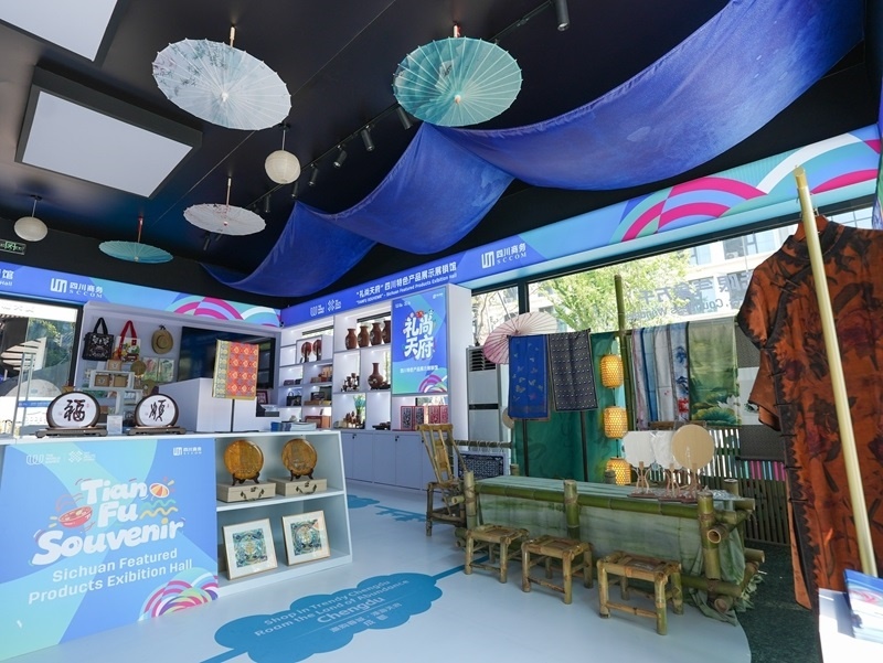 這是8月3日在成都世運(yùn)會運(yùn)動(dòng)員村A區(qū)拍攝的四川特色產(chǎn)品展示展銷館。