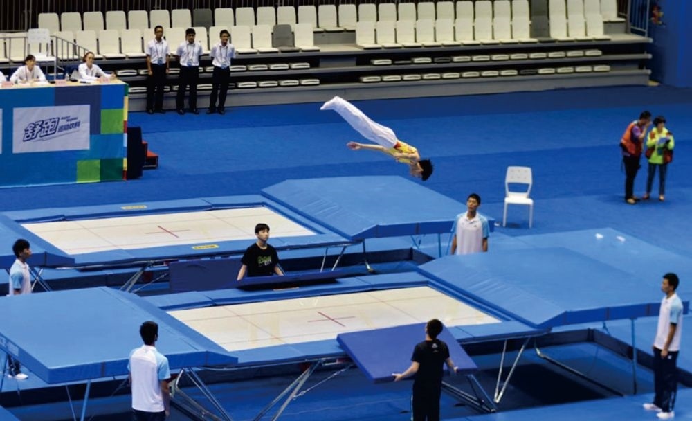 圖為蹦床項(xiàng)目比賽。圖片來自第12屆世運(yùn)會(huì)網(wǎng)上新聞中心