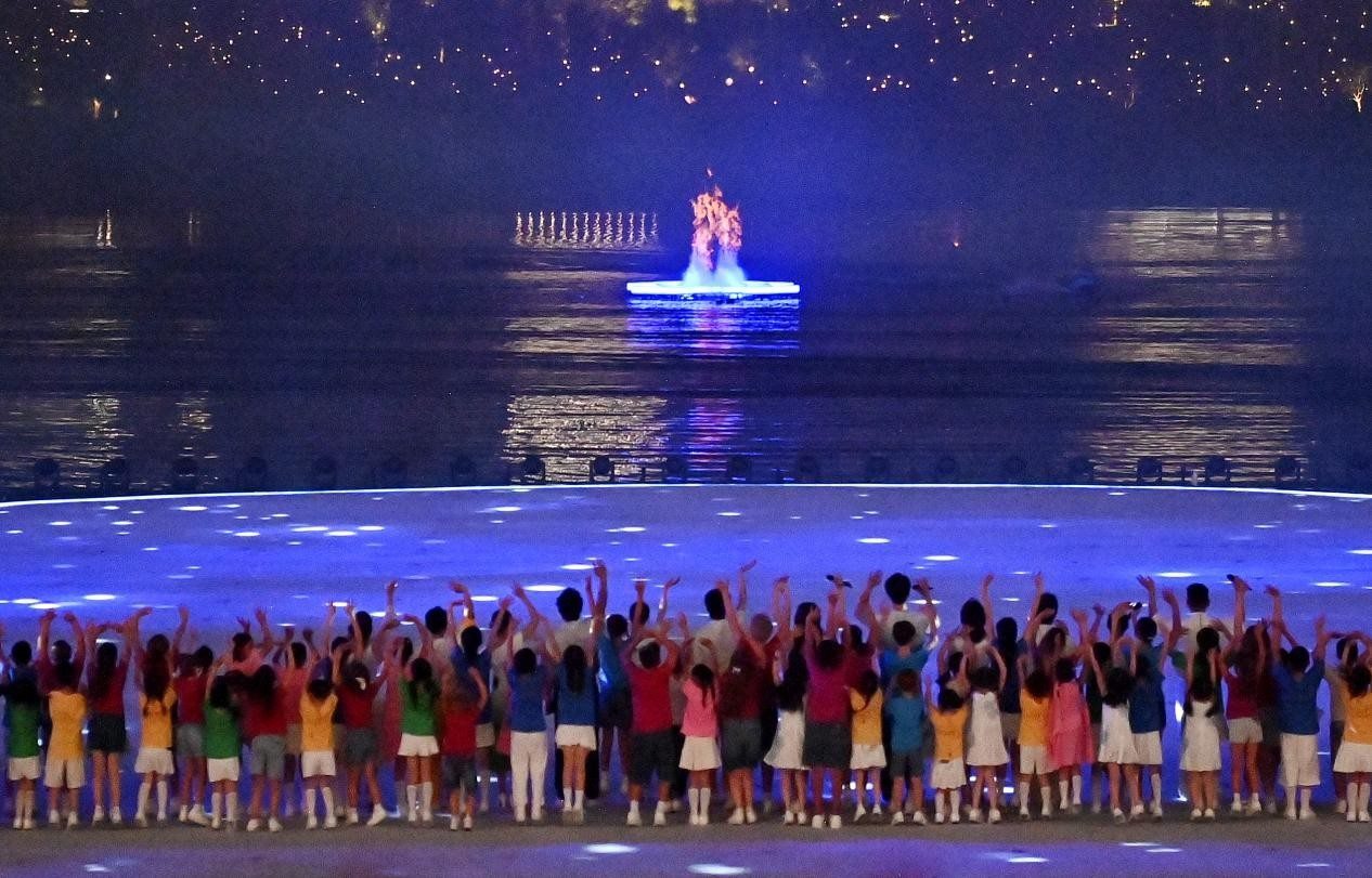 宣布開幕瞬間,象征世運(yùn)會(huì)會(huì)徽和“World”的“W”造型焰火點(diǎn)亮夜空;極具創(chuàng)意和挑戰(zhàn)的點(diǎn)火儀式,火炬“竹夢(mèng)”成功點(diǎn)燃世運(yùn)會(huì)首個(gè)“水火相融”于湖中的火炬塔,絢爛的火焰交相輝映。