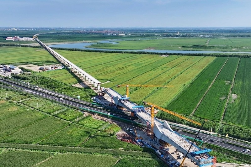 8月9日凌晨,由中鐵十四局承建的津?yàn)H高鐵東壽特大橋跨榮烏高速連續(xù)梁成功合龍。該連續(xù)梁位于山東壽光,是津?yàn)H高鐵山東段最大跨度連續(xù)梁,主跨長(zhǎng)168米。