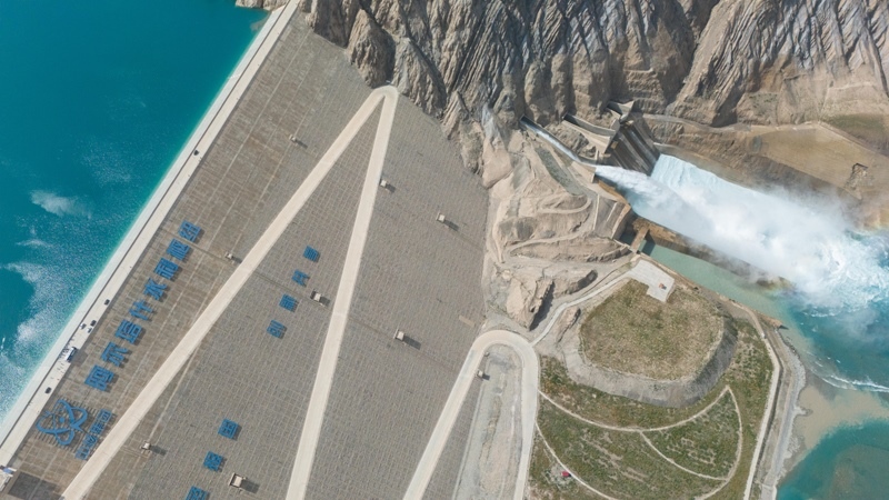 這是8月7日拍攝的阿爾塔什水利樞紐工程。