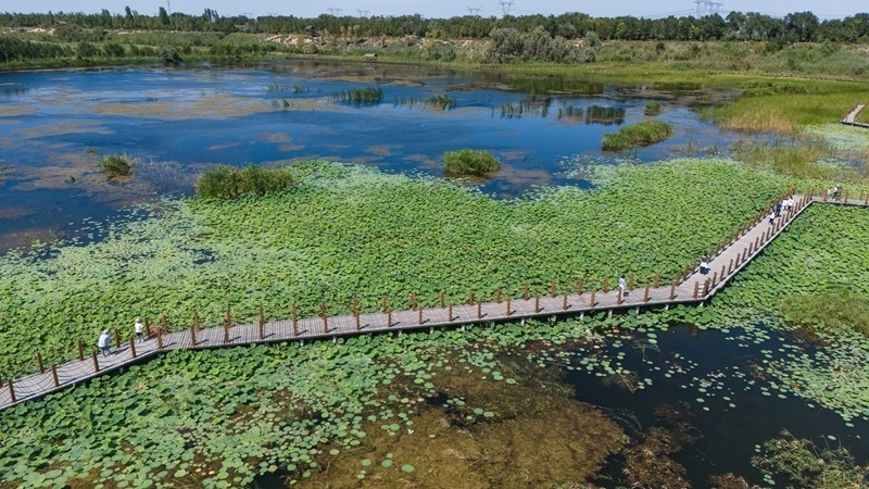 這是8月10日拍攝的瑪納斯國(guó)家濕地公園(無(wú)人機(jī)照片)。