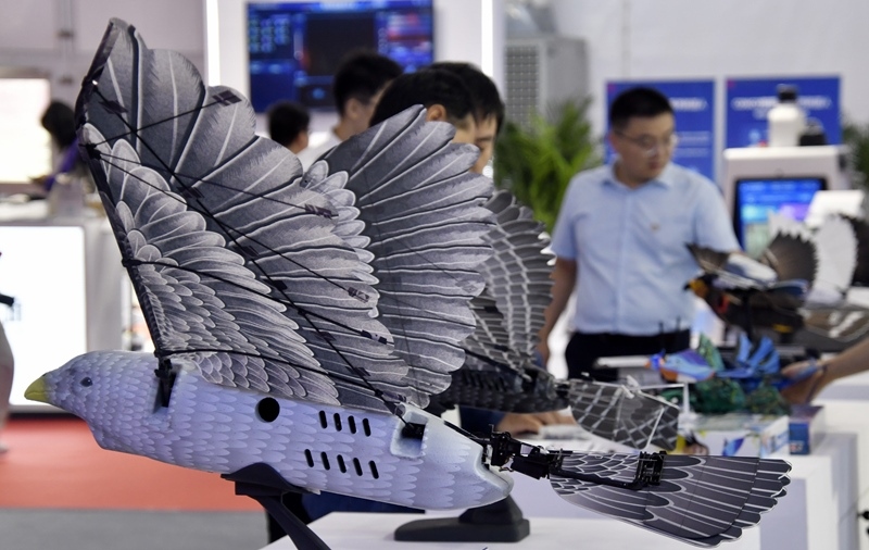 2025世界機(jī)器人大會上展示的仿生機(jī)器鳥(8月8日攝)。