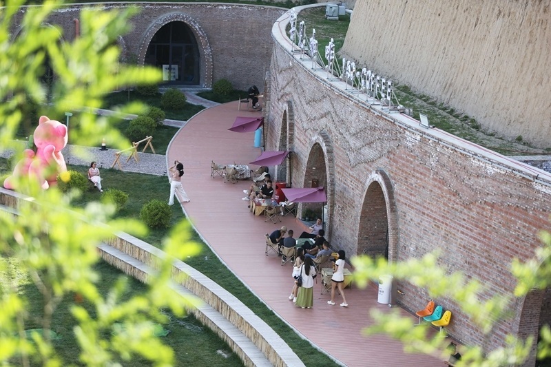 8月13日,人們在甘肅省定西市安定區(qū)青嵐山鄉(xiāng)的一家窯洞咖啡館休閑。