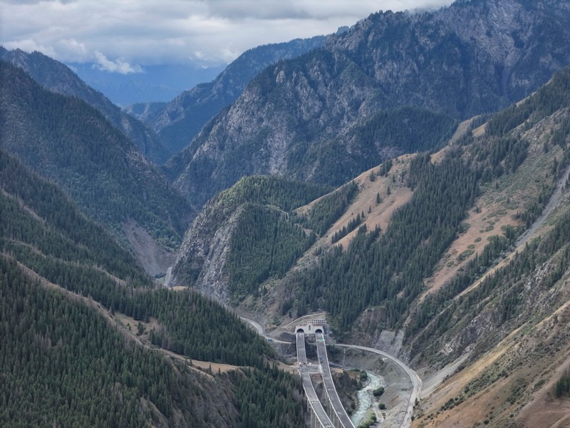 新疆烏尉高速公路穿越天山山脈(8月19日攝,無人機(jī)照片)。