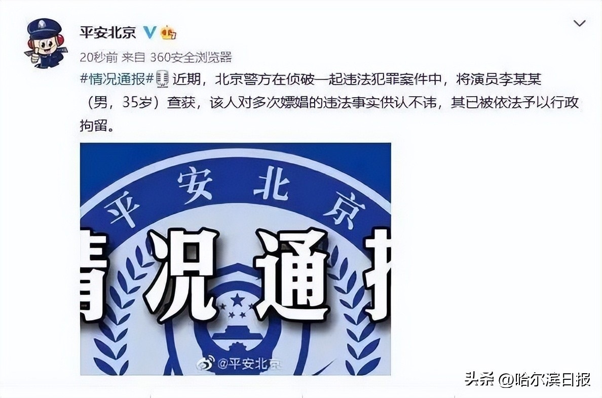 據(jù)此前報(bào)道,2022年,北京警方在偵破一起違法犯罪案件中,將演員李某某(男,35歲)查獲,該人對(duì)多次嫖娼的違法事實(shí)供認(rèn)不諱,其已被依法予以行政拘留。