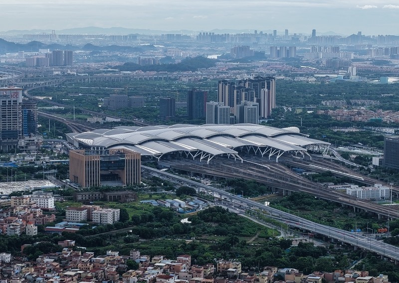 這是8月25日拍攝的廣州南站(無人機(jī)照片)。廣南聯(lián)絡(luò)線將從廣州南站導(dǎo)出,一站直達(dá)位于中心城區(qū)的廣州站。
