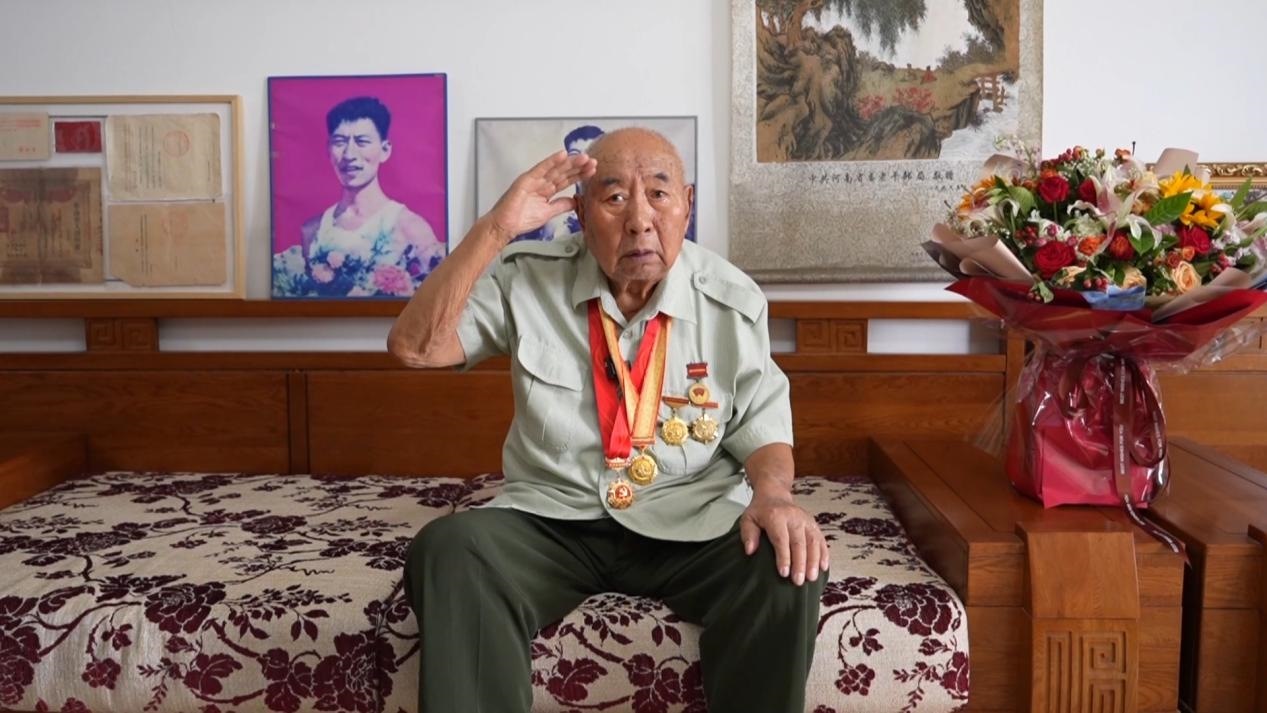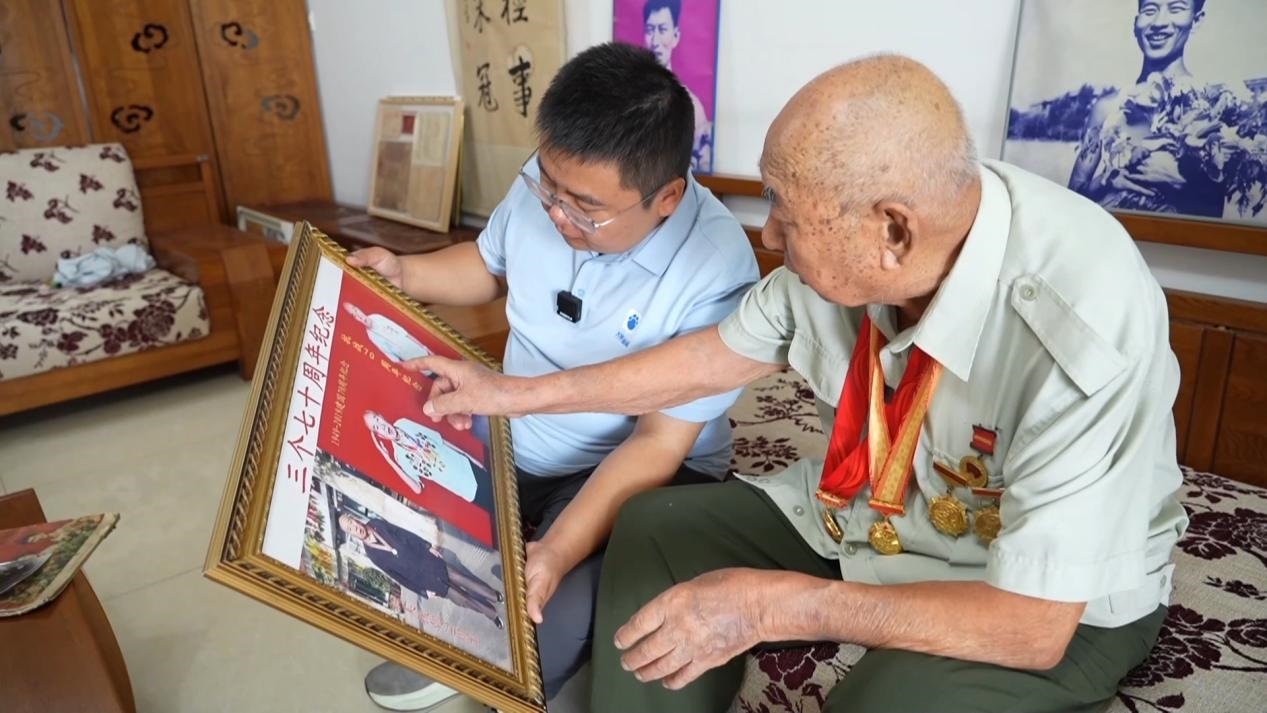 手捧“中國人民抗日戰(zhàn)爭勝利80周年”紀(jì)念章,