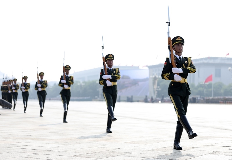 9月3日,紀念中國人民抗日戰(zhàn)爭暨世界反法西斯戰(zhàn)爭勝利80周年大會在北京隆重舉行。這是標兵就位。