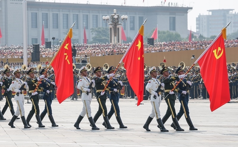 9月3日,紀(jì)念中國人民抗日戰(zhàn)爭暨世界反法西斯戰(zhàn)爭勝利80周年大會在北京隆重舉行。這是戰(zhàn)旗方隊(duì)接受檢閱。