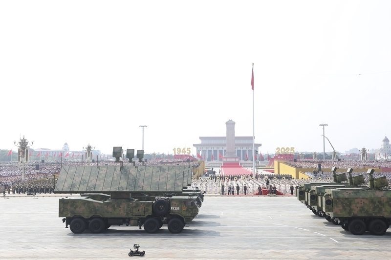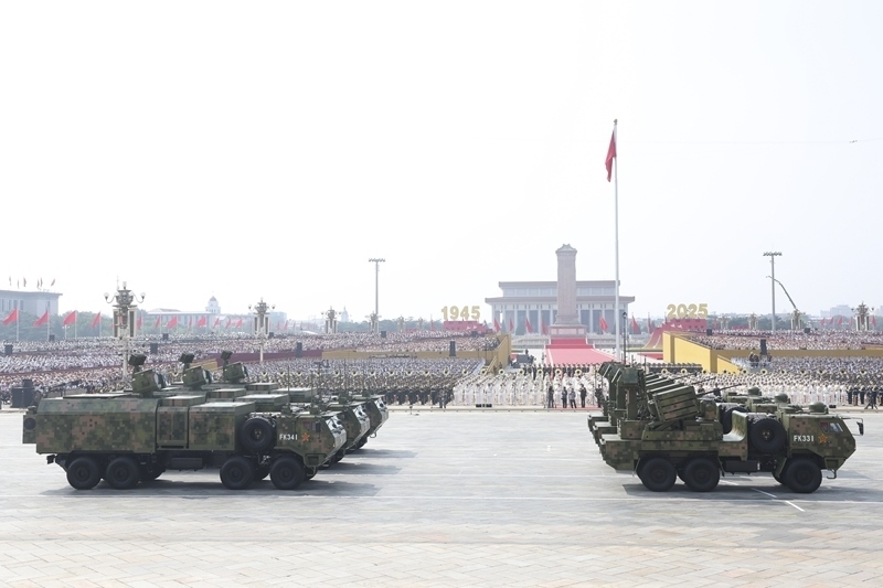 9月3日,紀(jì)念中國人民抗日戰(zhàn)爭暨世界反法西斯戰(zhàn)爭勝利80周年大會在北京隆重舉行。這是反艦導(dǎo)彈方隊(duì)接受檢閱。