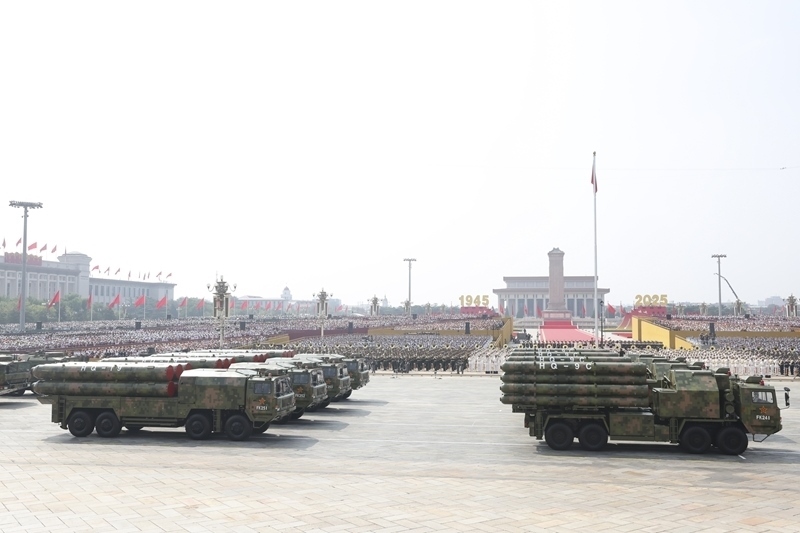 9月3日,紀(jì)念中國人民抗日戰(zhàn)爭暨世界反法西斯戰(zhàn)爭勝利80周年大會在北京隆重舉行。這是對空抗擊方隊(duì)接受檢閱。