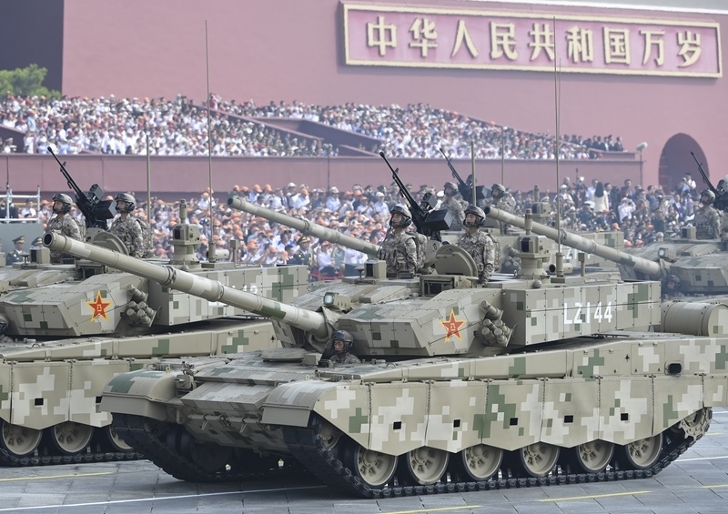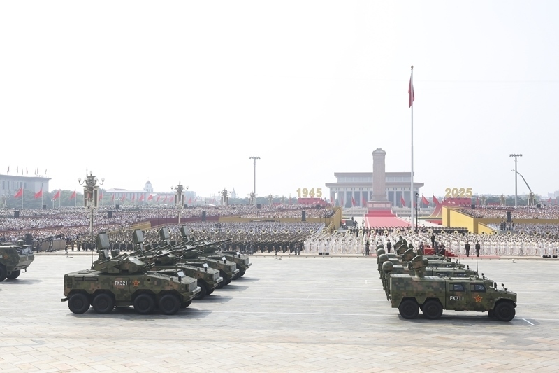 9月3日,紀(jì)念中國人民抗日戰(zhàn)爭暨世界反法西斯戰(zhàn)爭勝利80周年大會在北京隆重舉行。這是艦載防空武器方隊(duì)接受檢閱。