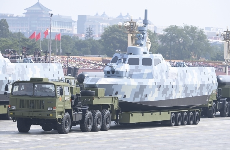 9月3日,紀(jì)念中國人民抗日戰(zhàn)爭暨世界反法西斯戰(zhàn)爭勝利80周年大會在北京隆重舉行。這是海上無人作戰(zhàn)方隊(duì)通過天安門廣場。
