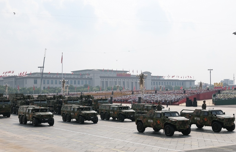 9月3日,紀念中國人民抗日戰(zhàn)爭暨世界反法西斯戰(zhàn)爭勝利80周年大會在北京隆重舉行。這是高超聲速導彈方隊接受檢閱。