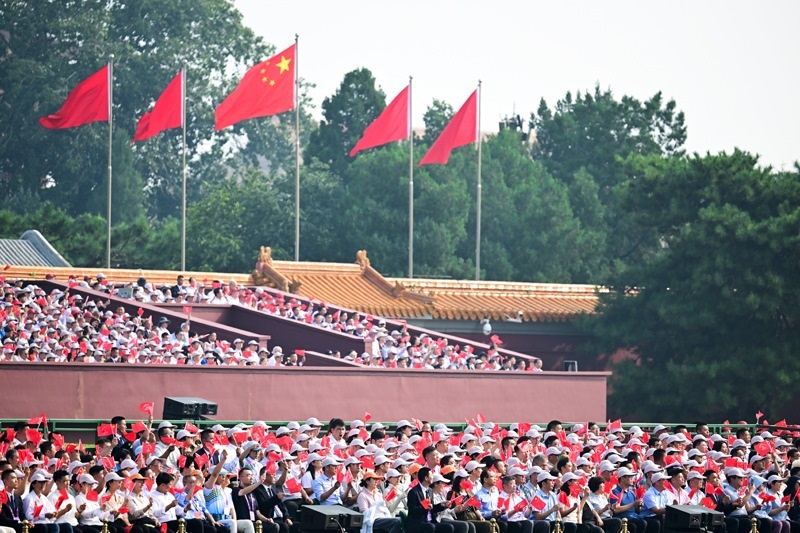 9月3日,紀念中國人民抗日戰(zhàn)爭暨世界反法西斯戰(zhàn)爭勝利80周年大會在北京隆重舉行。這是觀禮嘉賓。