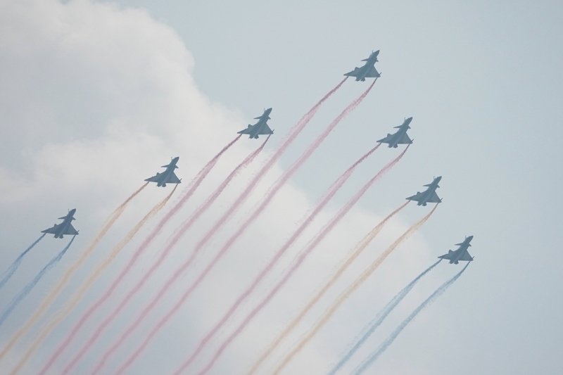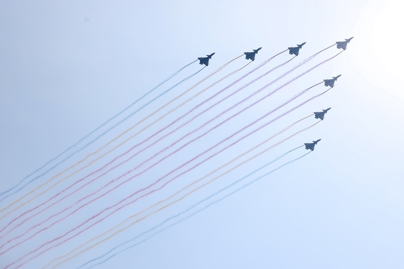 9月3日,紀念中國人民抗日戰(zhàn)爭暨世界反法西斯戰(zhàn)爭勝利80周年大會在北京隆重舉行。這是教練機梯隊接受檢閱。