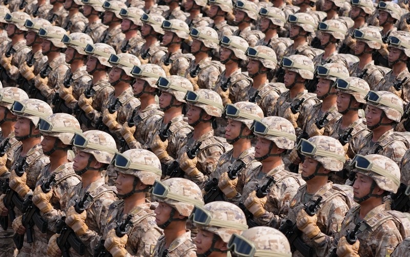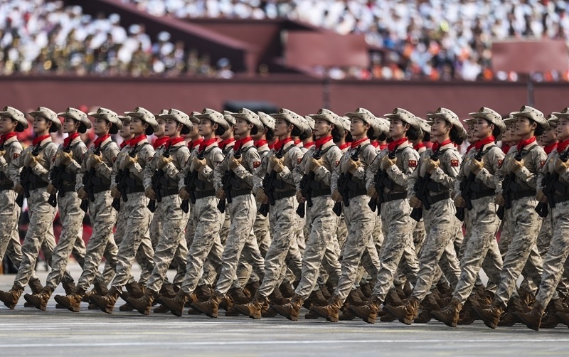 9月3日,紀(jì)念中國人民抗日戰(zhàn)爭暨世界反法西斯戰(zhàn)爭勝利80周年大會在北京隆重舉行。這是網(wǎng)絡(luò)空間部隊方隊接受檢閱。