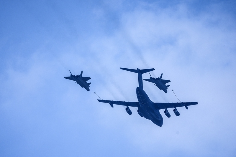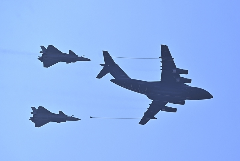 9月3日,紀(jì)念中國人民抗日戰(zhàn)爭暨世界反法西斯戰(zhàn)爭勝利80周年大會在北京隆重舉行。這是加受油機梯隊接受檢閱。