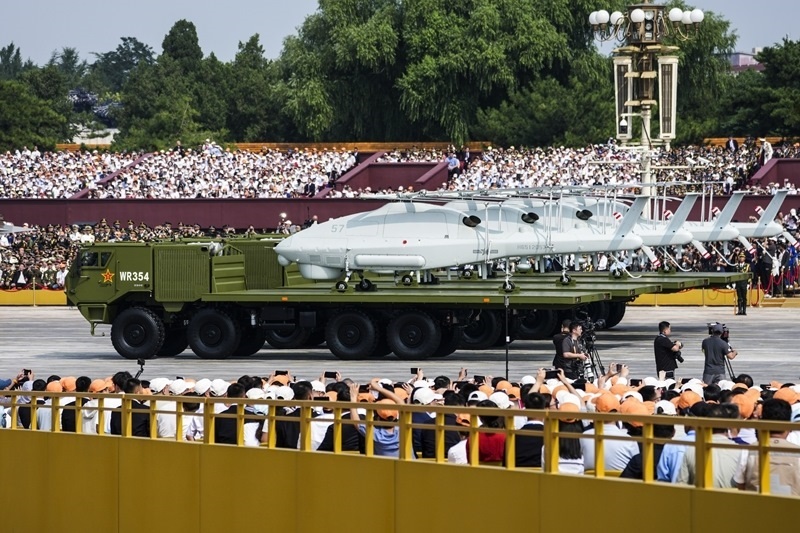 9月3日,紀(jì)念中國人民抗日戰(zhàn)爭暨世界反法西斯戰(zhàn)爭勝利80周年大會在北京隆重舉行。這是空中無人作戰(zhàn)方隊接受檢閱。