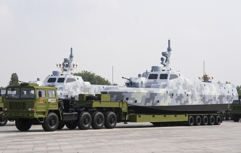 9月3日,紀(jì)念中國(guó)人民抗日戰(zhàn)爭(zhēng)暨世界反法西斯戰(zhàn)爭(zhēng)勝利80周年大會(huì)在北京隆重舉行。這是海上無(wú)人作戰(zhàn)方隊(duì)接受檢閱。