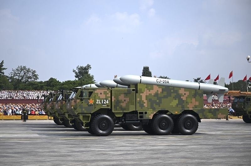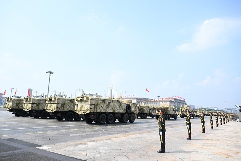 9月3日,紀(jì)念中國(guó)人民抗日戰(zhàn)爭(zhēng)暨世界反法西斯戰(zhàn)爭(zhēng)勝利80周年大會(huì)在北京隆重舉行。這是高超聲速導(dǎo)彈方隊(duì)接受檢閱。