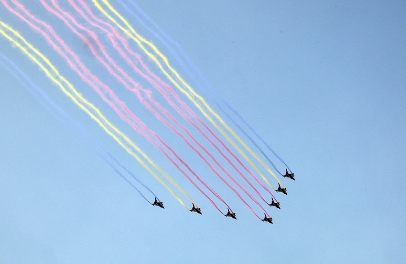9月3日,紀(jì)念中國(guó)人民抗日戰(zhàn)爭(zhēng)暨世界反法西斯戰(zhàn)爭(zhēng)勝利80周年大會(huì)在北京隆重舉行。這是教練機(jī)梯隊(duì)接受檢閱。