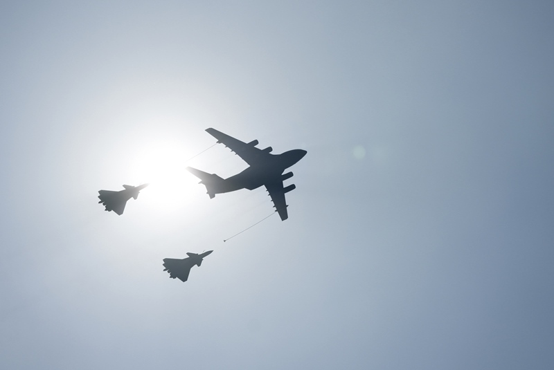 9月3日,紀(jì)念中國(guó)人民抗日戰(zhàn)爭(zhēng)暨世界反法西斯戰(zhàn)爭(zhēng)勝利80周年大會(huì)在北京隆重舉行。這是加受油機(jī)梯隊(duì)接受檢閱。