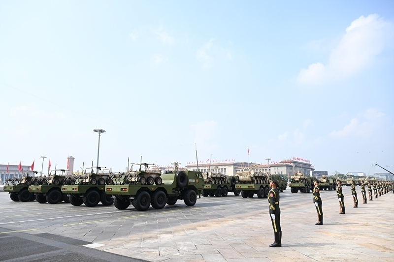 9月3日,紀(jì)念中國(guó)人民抗日戰(zhàn)爭(zhēng)暨世界反法西斯戰(zhàn)爭(zhēng)勝利80周年大會(huì)在北京隆重舉行。這是信息支援方隊(duì)接受檢閱。
