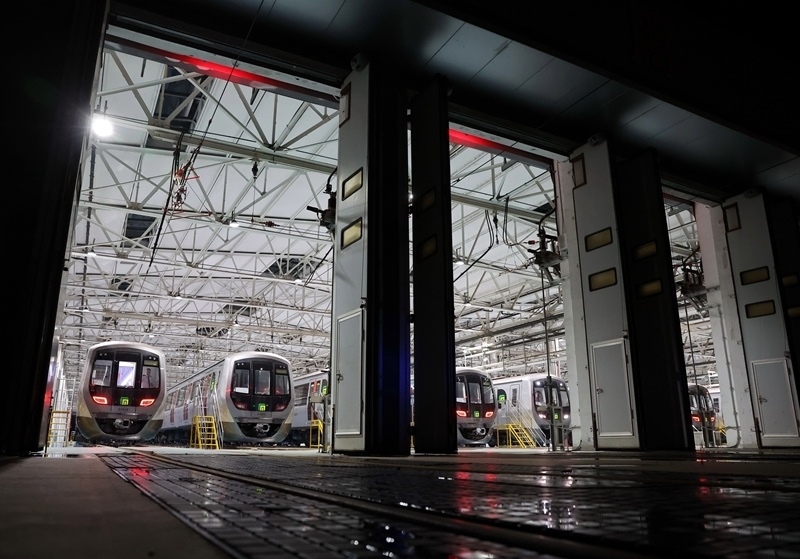 9月9日,地鐵列車在石家莊市地鐵西兆通車輛段整裝待發(fā)。