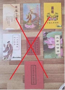 警方介紹,該案中,“一貫道”通過鼓吹“世界末日”即將來臨,對成員進行心理恐嚇,并向新成員發(fā)放《點亮智慧的心燈》等洗腦材料,大肆宣揚“三期末劫”“末世論”等邪說,謊稱“求道”能使人“逢兇化吉、開啟智慧、身心安寧、祛病消災”等,以此進行誘導。更有甚者,該組織強迫成員在加入之初便立下“十條大愿”,承諾永不脫離組織,還以“脫離即遭天譴厄運”相要挾。