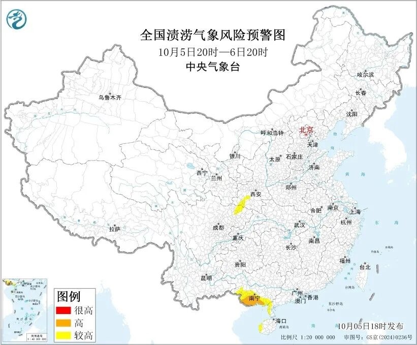 中央氣象臺10月5日18時(shí)發(fā)布漬澇風(fēng)險(xiǎn)氣象預(yù)報(bào):受強(qiáng)降雨的影響,預(yù)計(jì)10月5日20時(shí)至6日20時(shí),廣東西南部、廣西南部和西部、海南西部、四川東北部、陜西西部等地部分地區(qū)發(fā)生漬澇的氣象風(fēng)險(xiǎn)較高,其中,廣西南部等地部分地區(qū)發(fā)生漬澇的氣象風(fēng)險(xiǎn)高,易形成城市內(nèi)澇和農(nóng)田漬害,需加強(qiáng)防范。