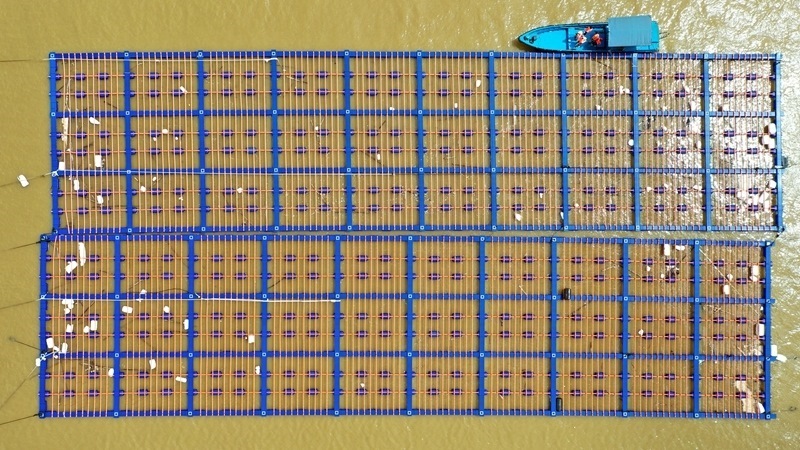 10月7日,當(dāng)?shù)厝罕娫跈z查蠔排是否受損(無(wú)人機(jī)照片)。