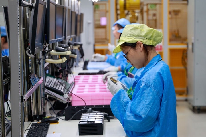 2025年9月15日,工作人員在江蘇無(wú)錫高新區(qū)綜合保稅區(qū)捷普電子(無(wú)錫)有限公司的生產(chǎn)車間里進(jìn)行產(chǎn)品檢驗(yàn)。新華社記者 劉佳琪 攝