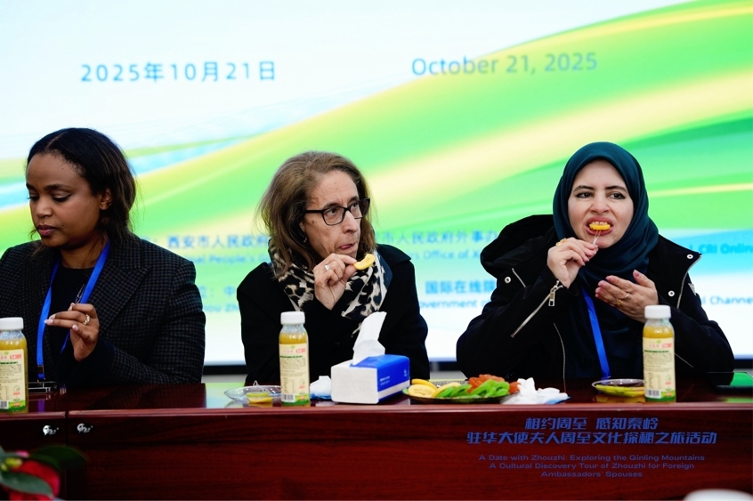 駐華大使夫人品嘗著不同品種的獼猴桃以及各式各樣的獼猴桃深加工食品,紛紛稱贊其細(xì)膩的口感、獨特的風(fēng)味和濃郁的果香。“這不僅是一次味覺的享受,更是一次對中國鄉(xiāng)村產(chǎn)業(yè)振興的直觀感受。”摩洛哥駐華大使夫人表示,“我非常期待后續(xù)可以和周至合作,因為摩洛哥很喜歡這種水果,我也希望可以在這里學(xué)到一些產(chǎn)業(yè)發(fā)展的知識,并把這些知識帶回我們國家?!?/p>