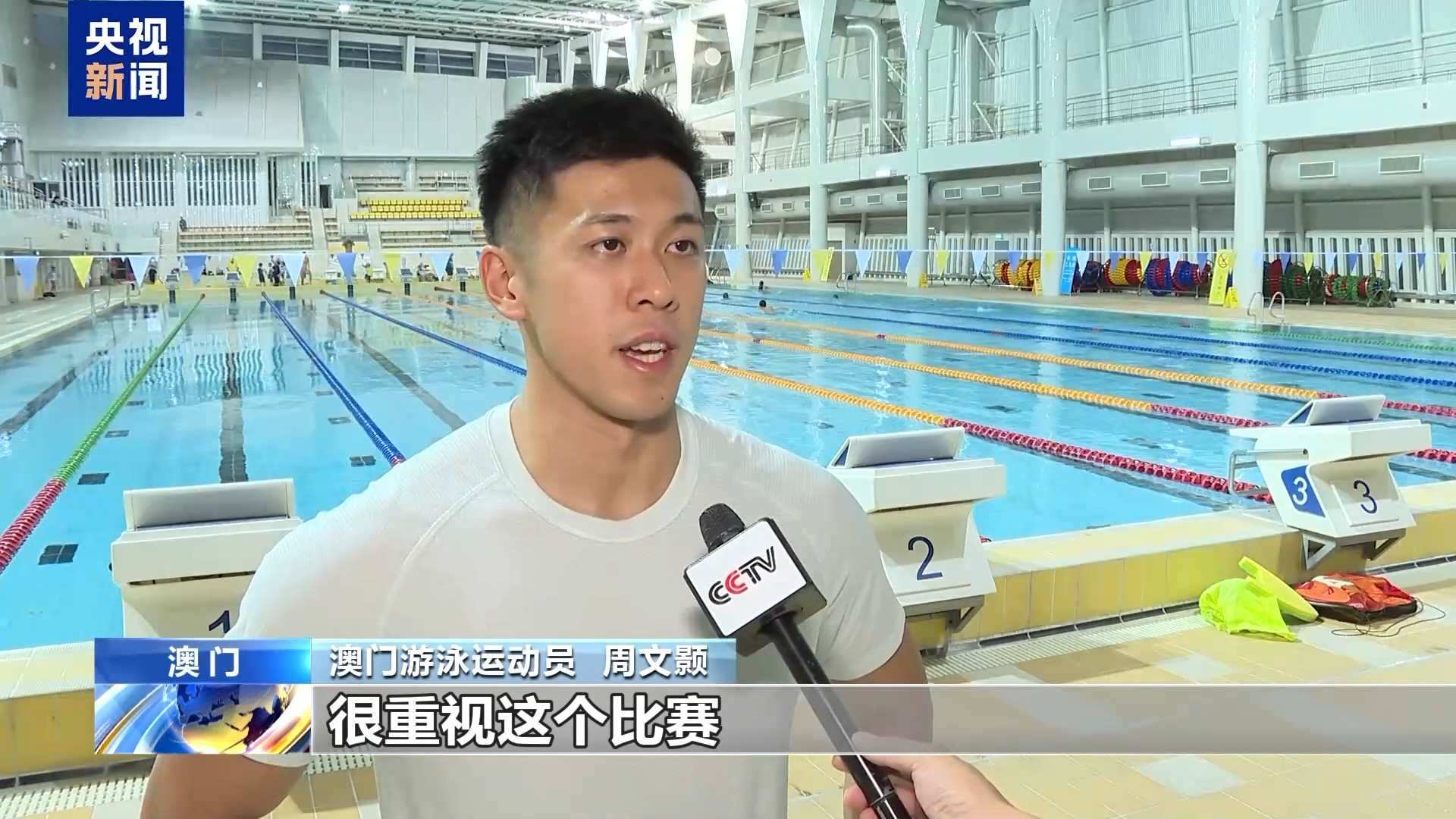 澳門游泳運動員 周文顥:我把全運會當(dāng)作是今年最重要的比賽,很重視這個比賽,然后比賽水平也很高。