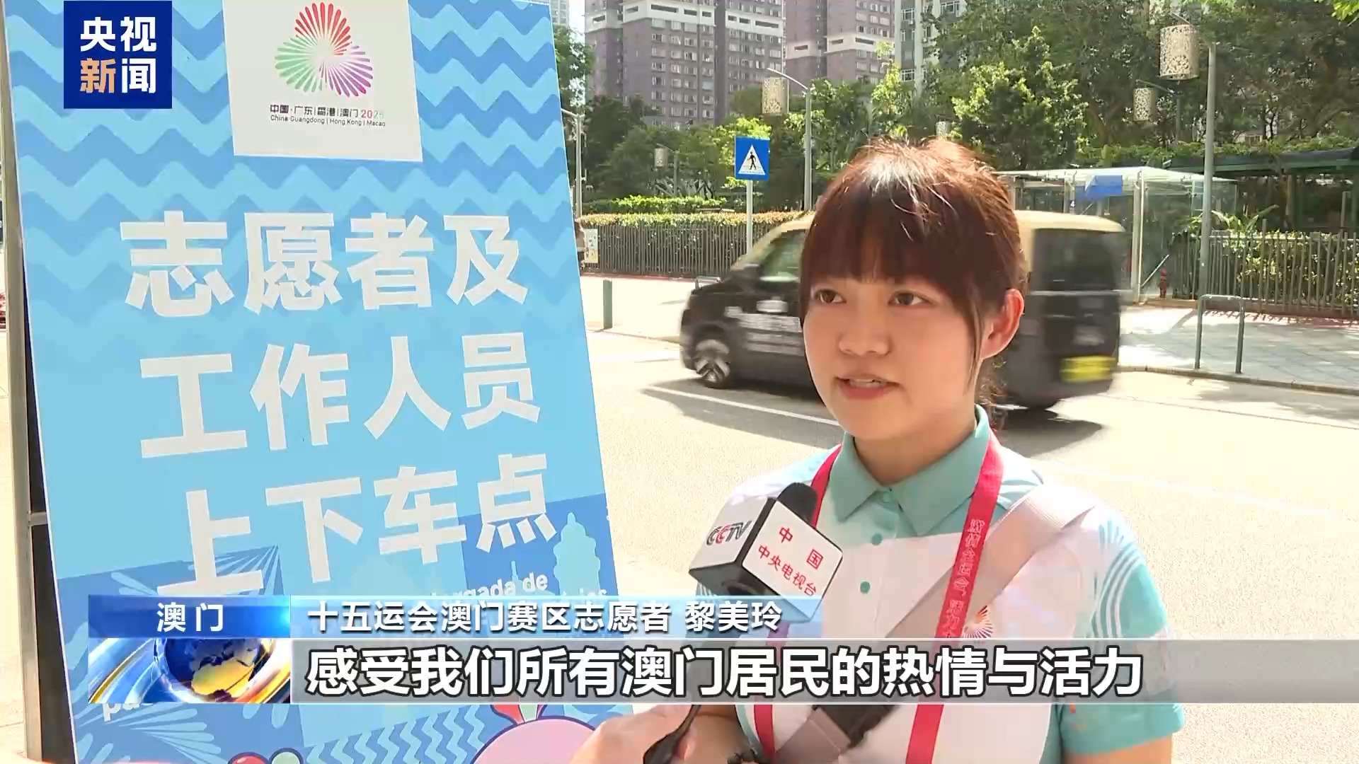 十五運會澳門賽區(qū)志愿者 黎美玲:我本身是一名小學(xué)老師,這次很開心以志愿者的身份參與在家門口舉辦的全運會賽事的服務(wù)工作。我們已經(jīng)都準備好了,歡迎各地的朋友來到澳門,感受激情全運會和活力大灣區(qū),感受我們所有澳門居民的熱情與活力。