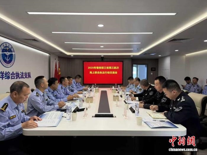 11月12日,粵桂瓊?cè)?區(qū))第三次海上聯(lián)合執(zhí)法行動(dòng)交流會(huì)在中國漁政44002船召開。廣東省海洋綜合執(zhí)法總隊(duì) 供圖