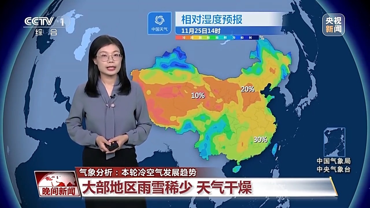 冷空氣帶來(lái)的雨雪并不多,而且在偏北風(fēng)吹拂之下,天氣會(huì)非常干燥。像是西北華北等地,午后的相對(duì)濕度可能只有20%左右,局部地區(qū)甚至不足10%,就連南方相對(duì)濕度也只有30%上下,所以整體都會(huì)是比較干燥的狀態(tài),大家要及時(shí)補(bǔ)充水分,并且注意用火安全。