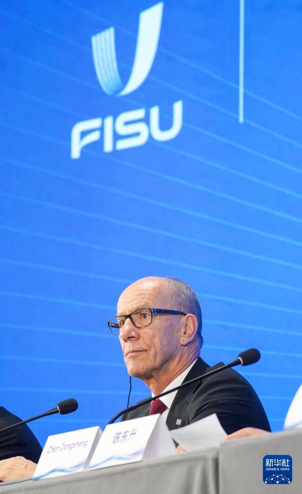11月26日,國際大學(xué)生體育聯(lián)合會主席雷諾·艾德在新聞發(fā)布會上。新華社記者 許暢 攝