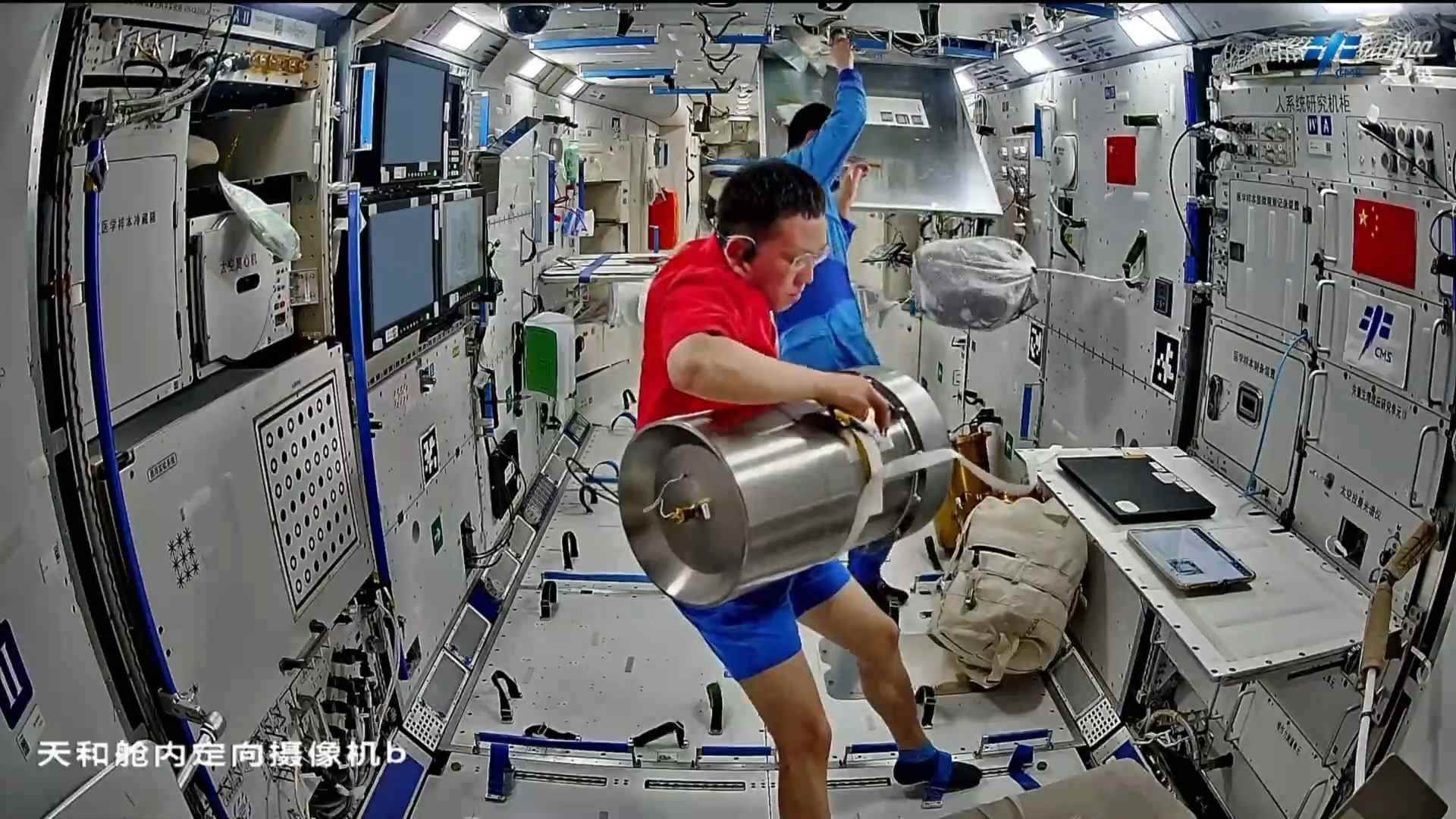 在設(shè)備檢查維護(hù)方面,乘組開(kāi)展了低溫存儲(chǔ)裝置及-80℃空間冰箱巡視、環(huán)控氣瓶壓力檢查、再生生保系統(tǒng)設(shè)備維護(hù)等工作。