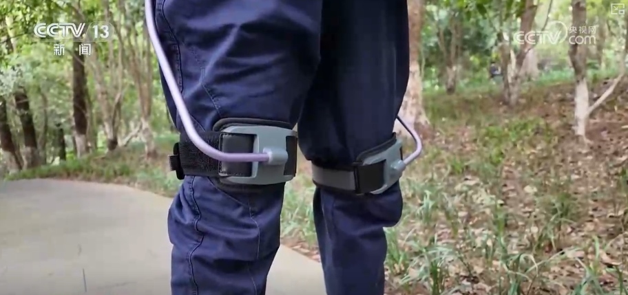 這套外骨骼機(jī)器人能夠提供拉力,帶動腿部運(yùn)動,可以為登山人節(jié)省大約30%的體力消耗。