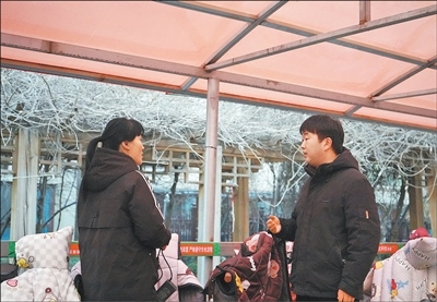 1月5日,河北省曲陽(yáng)縣永寧社區(qū)永寧花園小區(qū)內(nèi),社區(qū)干部(右)向居民了解車(chē)棚使用情況。受訪者供圖